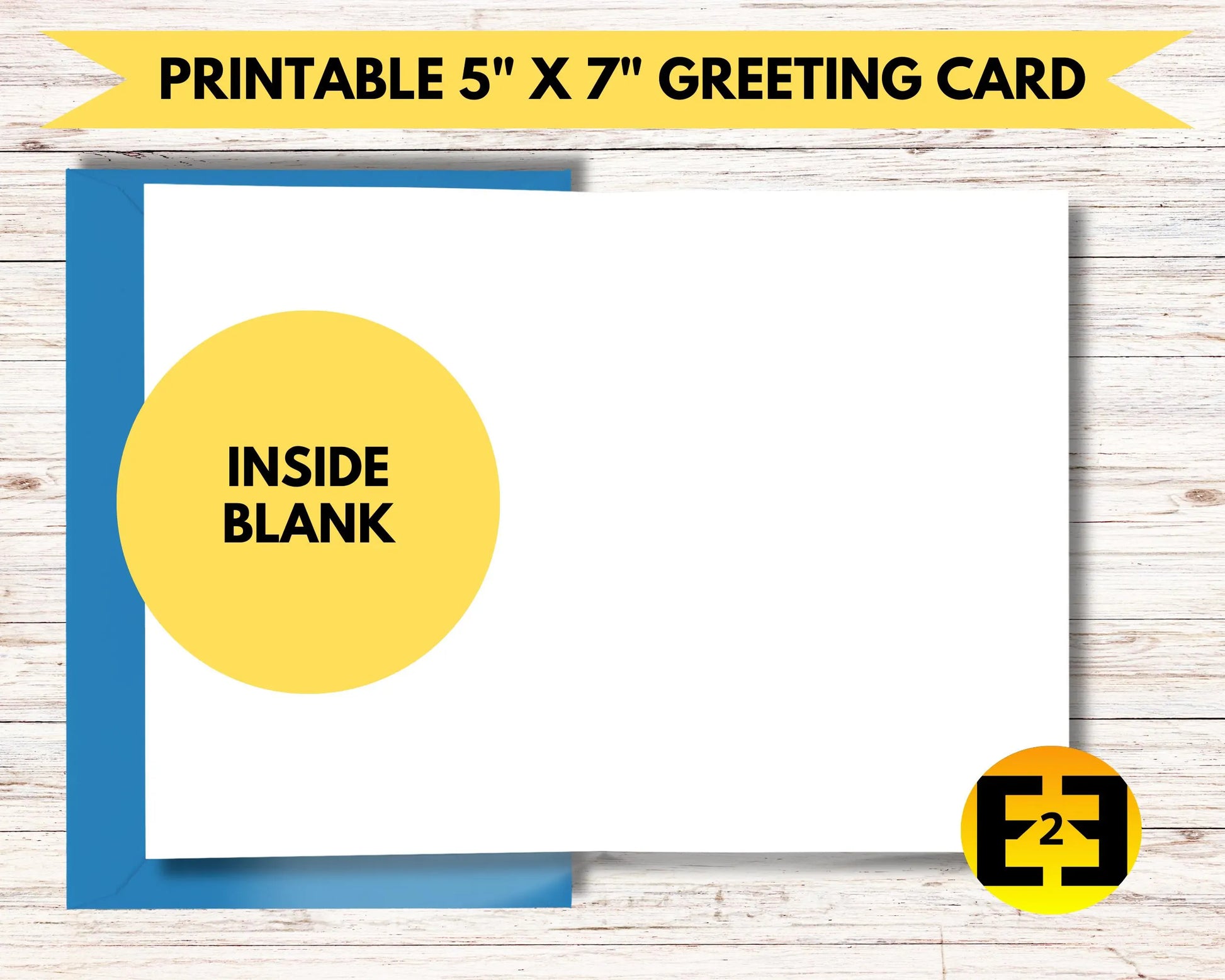 Download and print on cardstock. Final card folds to 5" x 7". Inside of card is left blank to write a personal message, add stickers or drawings for a personal touch! Both PDF and JPG images available. Use what works best for your printer. Digital downloads are non-refundable. Instant download after purchase.